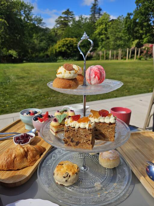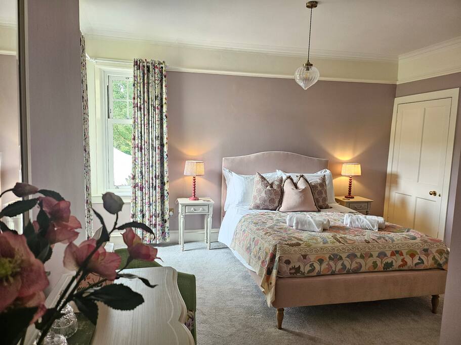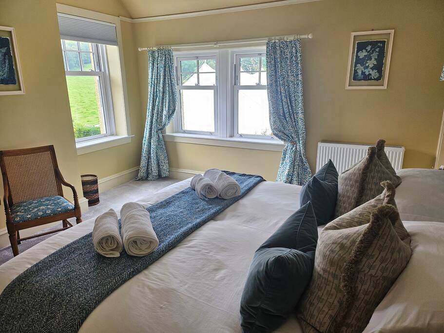 Your Private Scottish Retreat for Intimate Escapes, Retreats & Celebrations Fully renovated luxury house, each of the nine bedrooms features an ensuite bathroom with a rainfall shower, ensuring privacy and luxury for all guests. Spaces Include: • Dining Room seating 18 guests with a large communal table • Full Kitchen with a coffee machine and all the equipment you’d expect in a large family home • Cozy Lounge with a wood-burning stove • Family TV Room with a wood-burning stove • Spa Building featuring a sauna and hot tub • Yoga Studio (available upon request for an additional fee) …Everything you need for a luxury escape, retreat, or celebration! Bedroom Set-Up: Ground – Room 1: Super-King or set up as a Super-Twin Single (accessible room/bathroom) 1st Floor – Room 2: Queen Size Bed 1st Floor – Room 3: Super-King or set up as a Super-Twin Single 1st Floor – Room 4: Super-King or set up as a Super-Twin Single 1st Floor – Room 5: Super-King or set up as a Super-Twin Single 1st Floor – Room 6: King Size Bed 1st Floor – Room 7: Queen Size Bed 1st Floor – Room 8: Super King Bed 1st Floor – Room 9: Queen Size Bed Large Gardens and the Lady Burn (Stream): Explore our expansive gardens, where you’ll find a croquet lawn, a spacious BBQ area, and extensive decking for outdoor gatherings. The gardens include the tranquil Lady Burn, with a dipping pond. This peaceful stream flows along the property’s border and is often visited by local wildlife, such as deer, otters, herons, and buzzards.